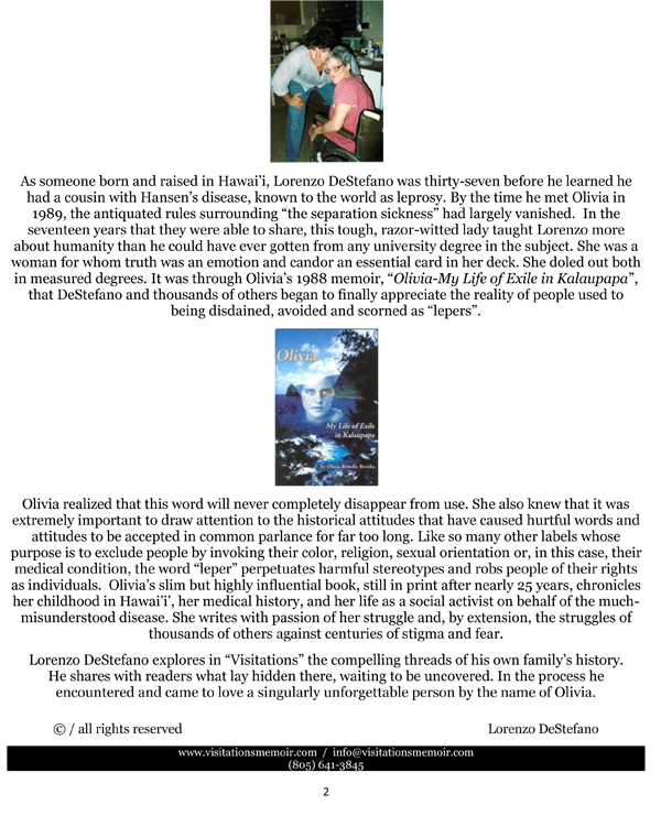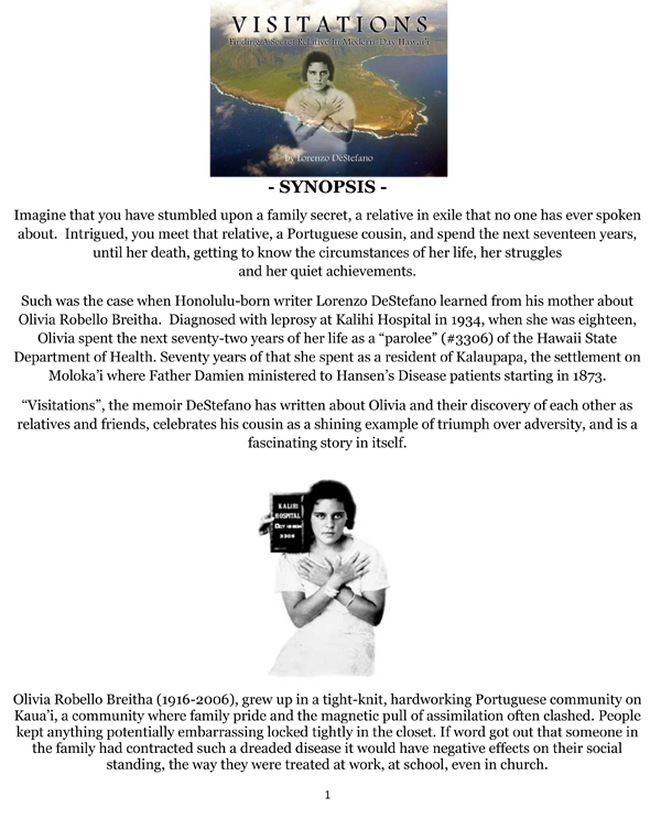 VISITATIONS – Finding A Secret Relative In Modern-Day Hawai’i” by Lorenzo DeStefano www.visitationsmemoir.com / info@visitationsmemoir.com (805) 641-3845 / 805 302-2480